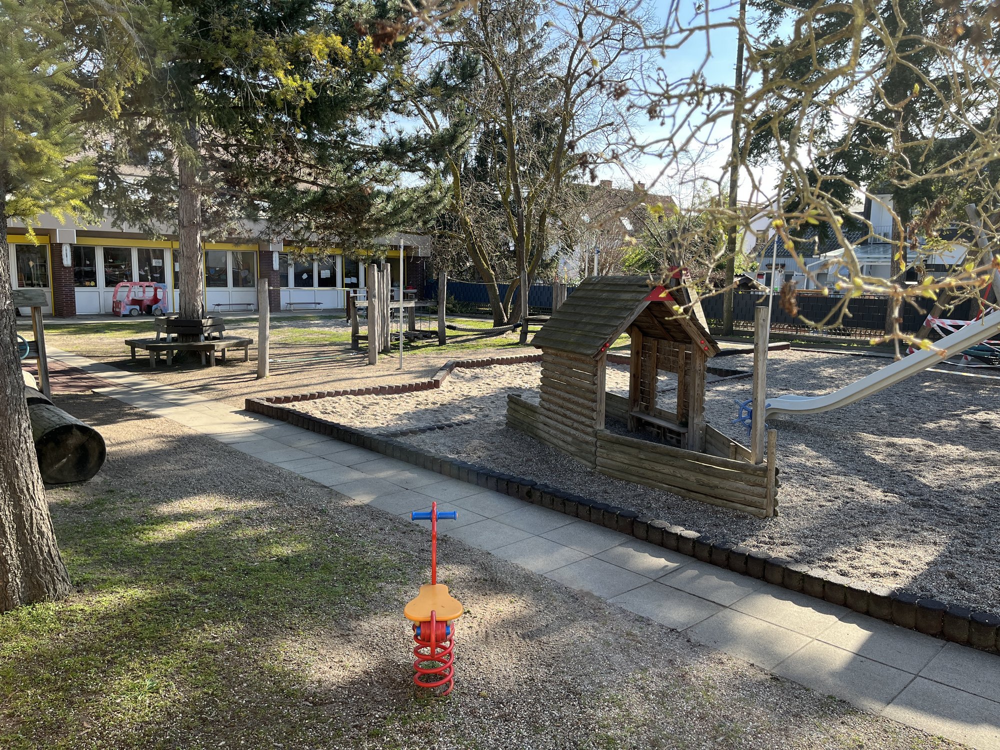Der Grundbedarf der Kinder nach Bewegung wird, außer in den regelmäßig stattfindenden Bewegungsangeboten, welche teilweise in der großen Schulturnhalle stattfinden, auch in dem einladenden Außengelände gedeckt.