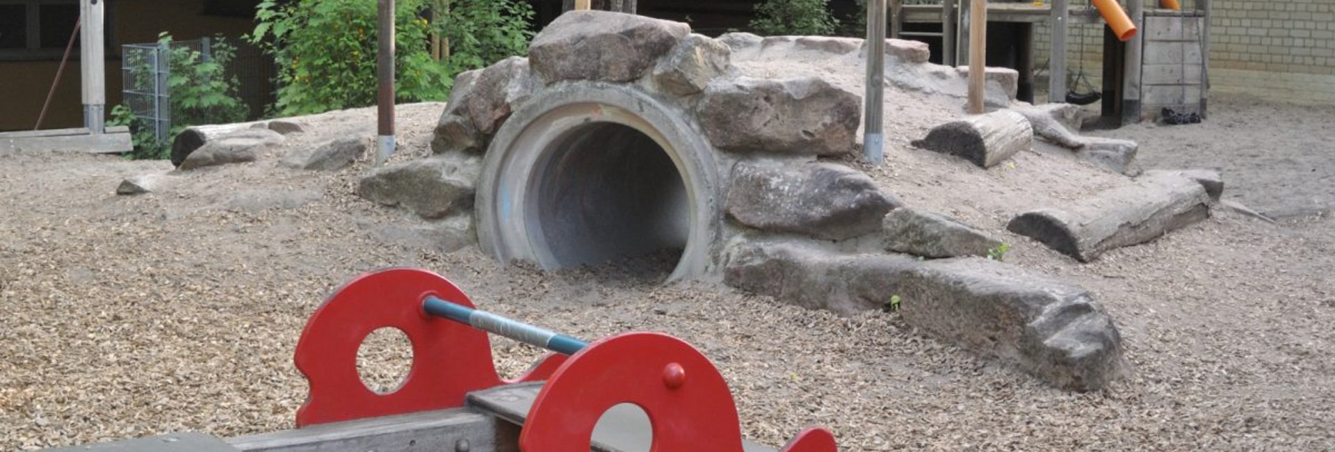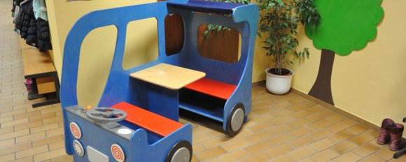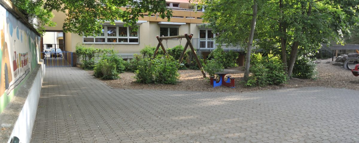Die dreigruppige Kindertagesstätte bietet Plätze für bis zu 75 Kinder am Vor- und Nachmittag. Nach Bedarf haben die Kinder berufstätiger Eltern die Möglichkeit ganztägiger Betreuung. Hierbei erhalten sie ein von der Wirtschaftskraft frisch zubereitetes Mittagessen. Die Speisen werden gemeinsam mit Erzieherinnen in familiärer Atmosphäre eingenommen.