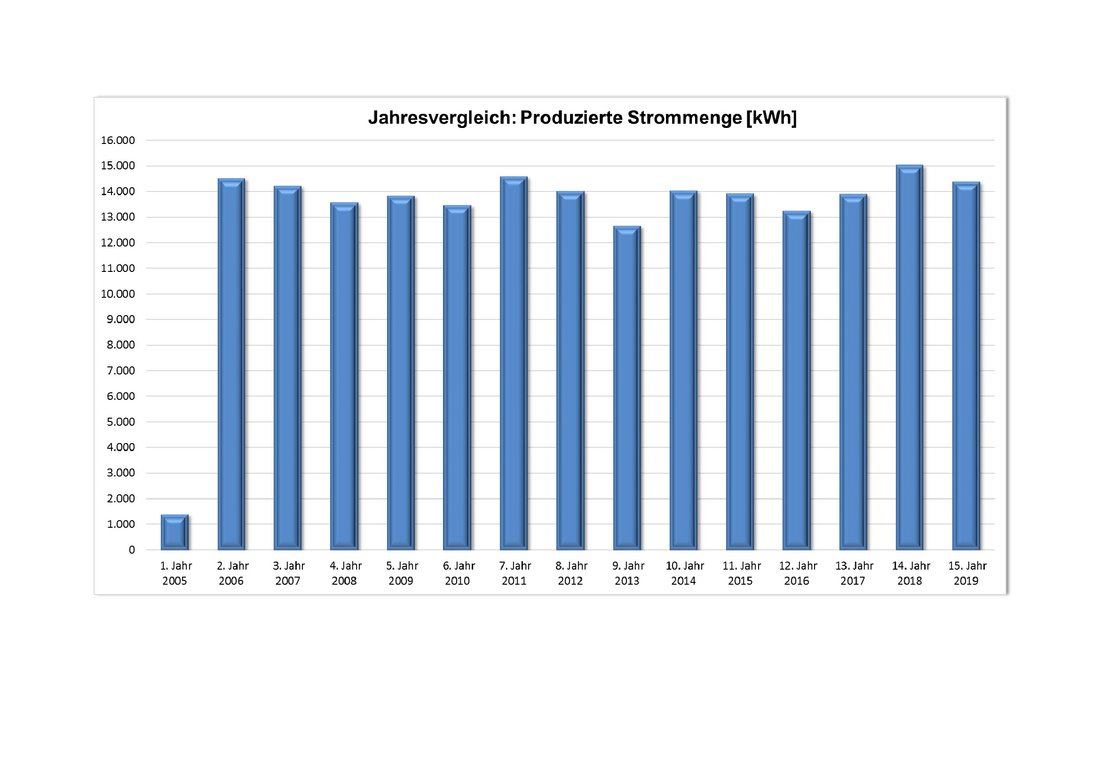 Seit dem Start der Anlage wurden insgesamt etwa 210.000 kWh ins öffentliche Netz eingespeist (Stand 09/2020). Damit liegen die Stromerträge exakt im Plan, die Erwartungen wurden zum Teil sogar weit überschritten.