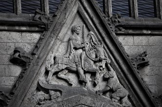 St. Martin war Offizier, diente unter dem späteren römischen Kaiser Julian und war für ihn in einer römischen Legion bei Worms stationiert. Als er für den Imperator im Jahr 356 in den Krieg gegen die Germanen ziehen sollte, weigerte er sich und trat aus dem Militärdienst aus. Der Legende nach traf er dabei auf einen frierenden Bettler und teilte kurzerhand seinen Mantel mit dem Schwert. Bevor der arme Mann dem Soldaten danken konnte, ritt dieser schnell hinfort.