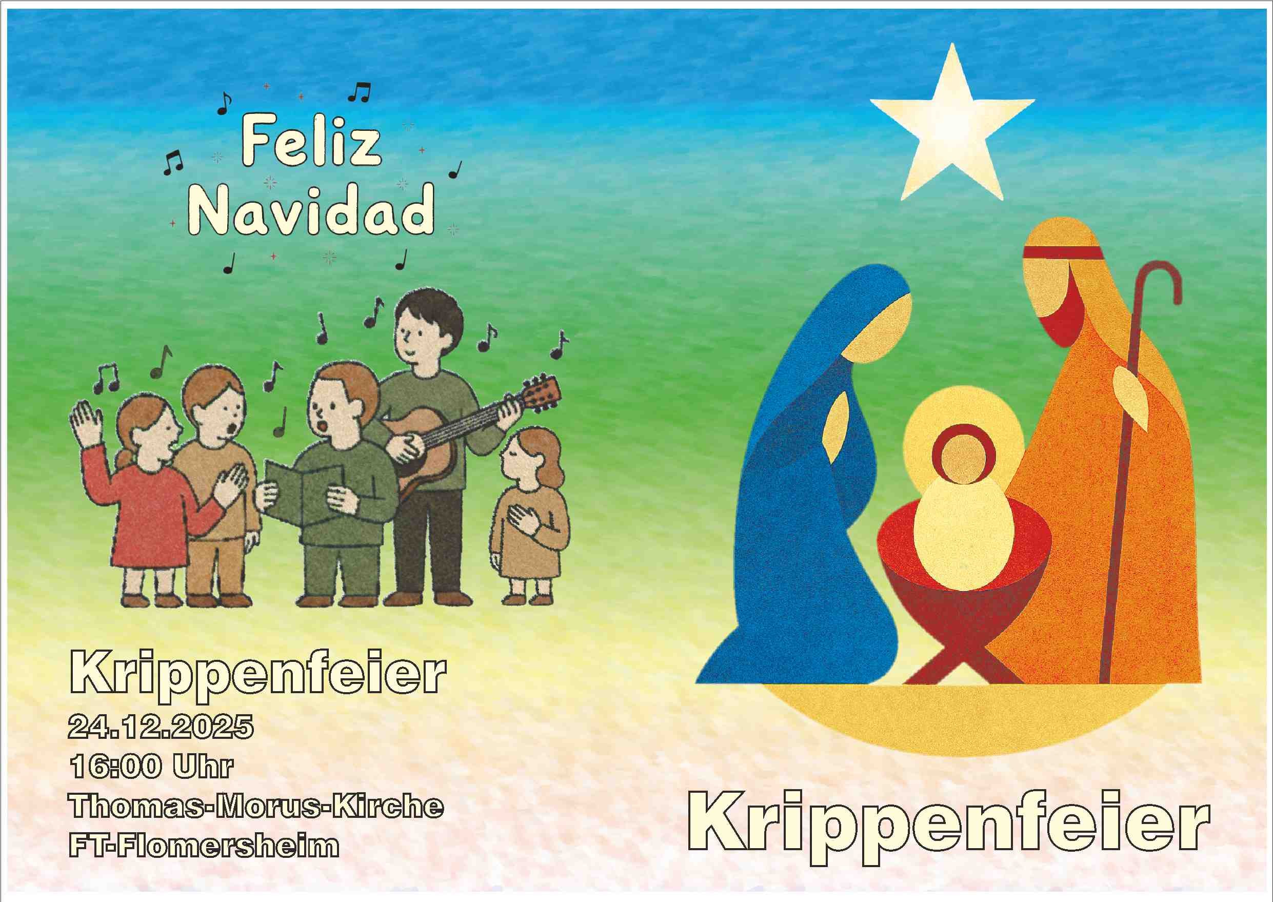 16:00 Uhr – Kinderkrippenfeier; Mitgestaltung: Cantai, Kirche St. Thomas Morus FT-Flomersheim [ Flyer ]