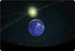 Nach dem Empfang durch einen Astronomen begann der eineinhalbstündige Weltraumflug, vorbei an der ISS, hinaus aus unserem Sonnensystem; flogen Planeten und ihre Monde an, Sterne und Sternenbilder unserer Milchstraße bis hin ans Ende des Universums.