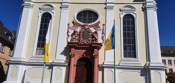 Pünktlich zum Osterfest wurde die ukrainische Nationalflagge vor mehreren Kirchen der Pfarrei Hl. Dreifaltigkeit gehisst. Sie hängt nun vor den drei großen Kirchen, in denen regelmäßig Sonntagsgottesdienste stattfinden (St. Ludwig, St. Thomas Morus und St. Jakobus / ÖGZ) sowie vor St. Dreifaltigkeit auf dem Rathausplatz. Die Flaggen sollen ein Zeichen der Solidarität mit und des Respekts für das ukrainische Volk sein, welches sich nunmehr seit fast acht Wochen im Kriegszustand befindet und nach wie vor brutaler Aggression ausgesetzt ist.