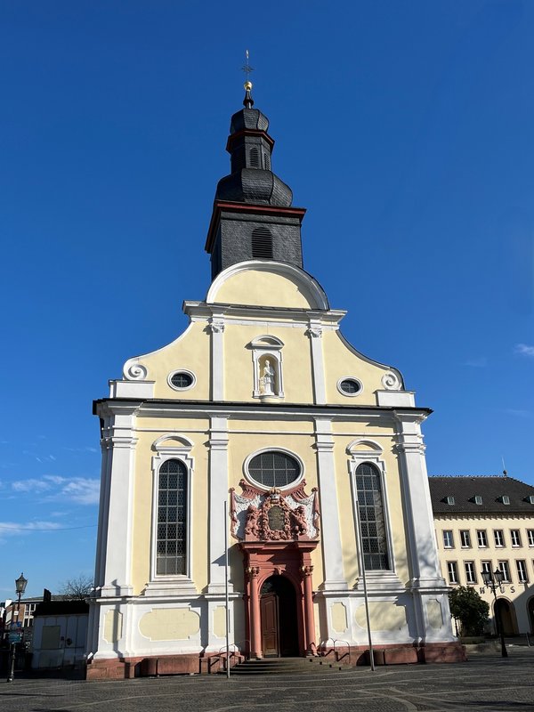Im Zweiten Weltkrieg wurde die Kirche bis auf die Umfassungsmauern zerstört, jedoch bereits in den Jahren 1945 bis 1949 unter Pfarrer Wilhelm Hilzensauer und mit großer Opferbereitschaft der Frankenthaler Katholiken wiedererrichtet nach den Plänen des Frankenthaler Architekten Josef Ochs. Die Altäre des späteren 18. Jahrhunderts wurden 1953 aus der Spitalkirche Baden-Baden übernommen.